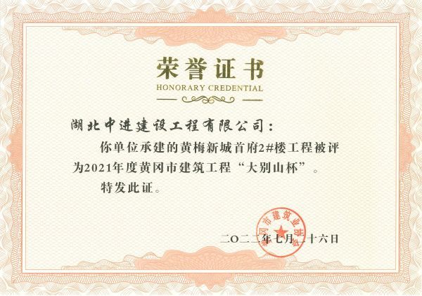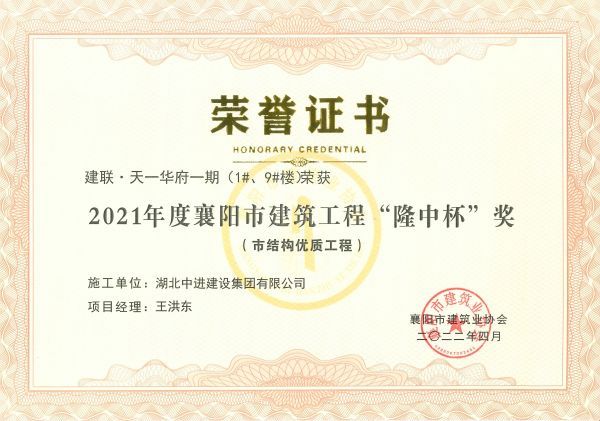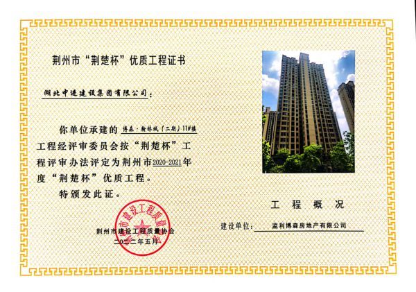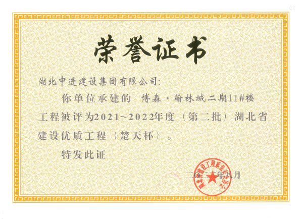 2022年公司项目工程获奖证书